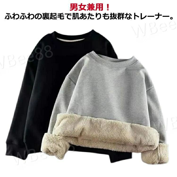 スウェット 裏起毛 レディース メンズ クルーネック トップス スエット トレーナー プルオーバー 長袖 防寒 暖かい 冬服 厚手 裏ボア 無地 シンプル あったか カジュアル 大きいサイズ 男女兼用 ユニセックス おしゃれ 秋冬 冬服 M-5XL