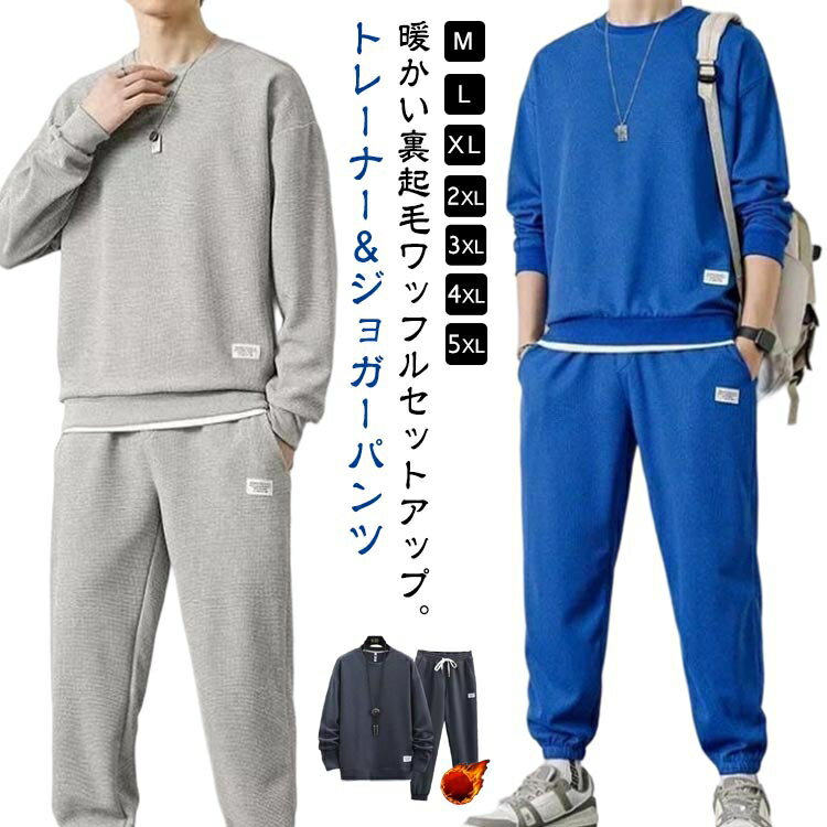 イージー 裏起毛 スウェットパーカー スウェット 裏起毛 トレーナー ジョガーパンツ メンズ ワッフル 2点セット スウェットパンツ 厚手 ロングパンツ プルオーバーパーカー 上下セット 防寒 暖かい 秋冬 保温 秋物 冬物 学生 男子 大きいサイズ 無地