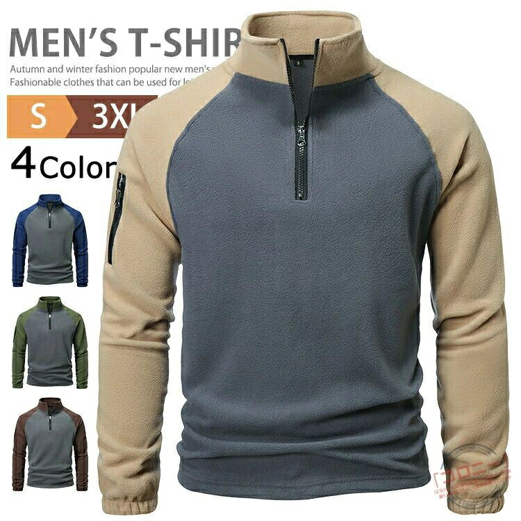 裏起毛 ハイネックトレーナー メンズ ボアフリース トレーナー ハーフジップ ゴルフウェア ポロシャツ 長袖 暖かい トップス プルオーバー アメカジ スポーツ カジュアルコーデ ルームウェア おしゃれ レジャー キャンプ 登山 釣り 秋冬 冬物 冬 厚手