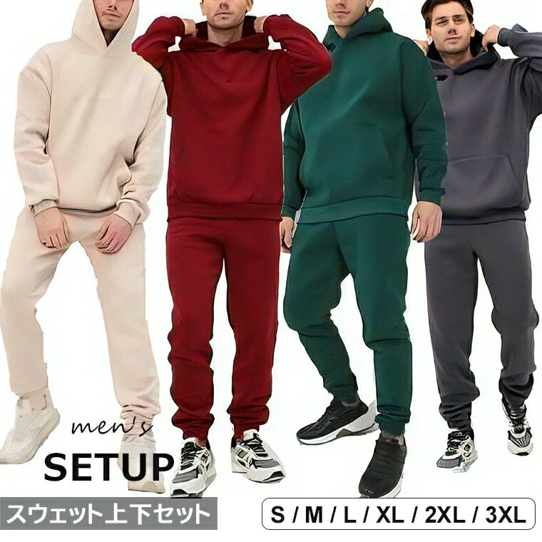 スウェットセットアップメンズフード付き無地スウェットカップルセットスポーツ2点セットメンズパーカー スウェット スウェットパンツ