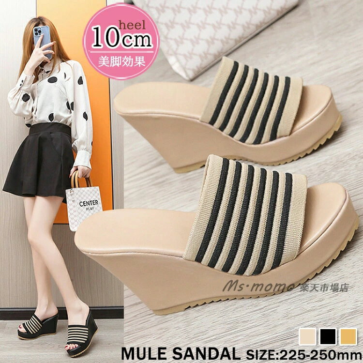 ミュールサンダル レディース 履きやすい 夏 サンダル ミュールサンダル 厚底靴 ウェッジソール ボーダー柄ストライプミュールサンダル ビーチぺたんこ 歩きやすい 美脚 大人韓国風
