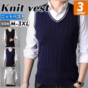 ゴルフウェア メンズ ゴルフベスト ニットベスト Vネック 無地 リブ編み 洗える ノースリーブ セーター スクールベスト ゴルフ トップス おしゃれ 春 夏 春夏