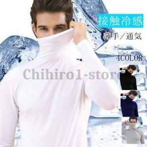 ゴルフシャツ メンズ ゴルフウェア 接触冷感 ラッシュガード 紫外線対策 日焼け止め 薄手通気 長袖Tシャツ タートルネック スポーツシャツ