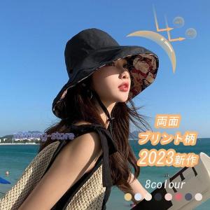 両面 プリント柄帽子 レディース 大きいサイズ 完全遮光 遮光100%カット UVカット つば広 折りたたみ 飛ばない 日よけ 春 夏 春夏 母の日 UV セール 大きめ