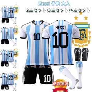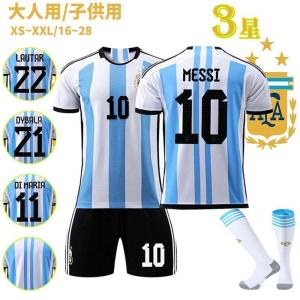 アルゼンチン代表 2022年ワールドカップ優勝 ホーム 大人用 子供用 上下着2点 ストッキング付き プロテクター メッシ 3星 サッカーユニフォーム