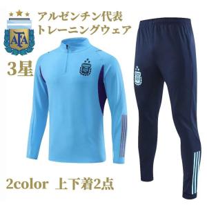 アルゼンチン代表 2022年ワールドカップ優勝 3星 サッカートレーニングスーツ 長袖ハーフジッパーファッションツーピーススーツス+パンツ 練習
