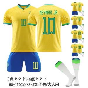 ブラジル代表 2022-23 スタジアム ホーム 半袖 サッカーウェア セット 背番号4/5/7/9/10/11/18/20 子供 大人