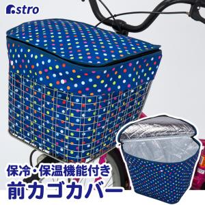 自転車前カゴカバー ネイビー×ドット柄 保冷機能付 撥水加工 防犯対策 アストロ 612-07