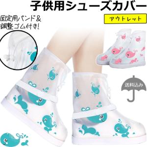 子供用 防水 シューズカバー クジラ 柄 足首 固定 バンド ショート丈 ファスナー 透明 クリア 折り畳み アウトレット GPT 2点迄メール便OK(gu1c485)