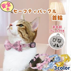 猫 首輪 愛猫の名前を刻印できるネームプレート付き 安全 セーフティバックル 花柄 おしゃれ リボン 鈴付き 名前入り 首回り 22〜27cm 13g