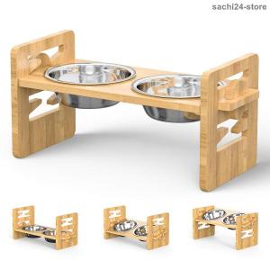 ペットボウルスタンド 食器台 犬 猫 ごはん皿 木製 4段階の高さ調節可能 滑り止め 水 餌入れ えさいれ