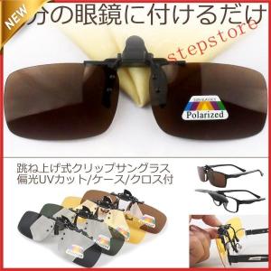 クリップオンサングラス 偏光 UVカット 跳ね上げ式 メンズ レディース クリップ式 サングラス メガネ かけたまま 眼鏡の上 黄色 緑 茶色 グレー
