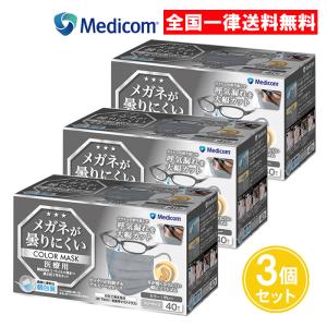 メガネが曇りにくいカラーマスク グレー 40枚入 3個セット メディコムジャパン