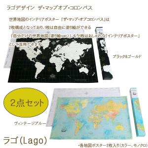 ●2種セット● 世界地図塗り絵ver.ラゴデザイン 塗り絵 ザ・マップ・オブコロンバス ヴィンテージブルー&モノクロ カラー箱入