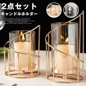 キャンドルホルダー 2点セット ガラス 透明 キャンドルスタンド クリア ロウソク立て