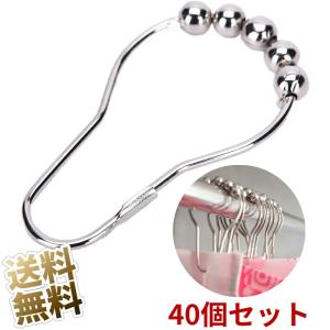 【40個セット】リングフック シャワーカーテン用 カーテンフック ボール付きで開閉がスムーズ メッキ