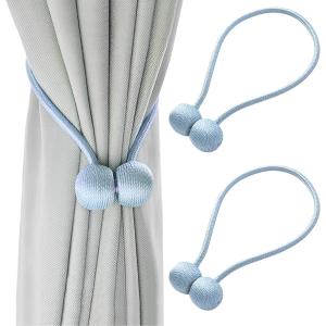 タッセル カーテン 留め具 マグネット 磁石 シンプル フック クリップ 2個セット (ライトブルー, 中)
