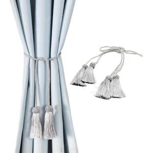 タッセル カーテン カーテン留め ロープ 紐 2個セット (グレー, 95cm)