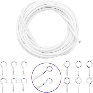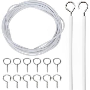 カーテン ワイヤー 5m ロープ レール 吊り下げ カフェカーテン DIY フック金具12個セット ホワイト