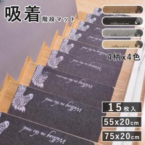 階段マット 滑り止めマット 15枚入りセット 選べる4柄 吸着タイプ 吸着マット 55x20cm 75x20cm洗える 転倒防止 防音 冷え対策 キズ防止 ケガ防止に 簡単取り付け