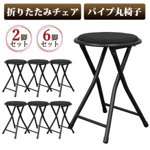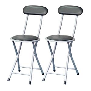 折りたたみ椅子 2脚セット 背もたれ付き 丸椅子 パイプチェア 折りたたみチェア 来客用 合皮 フェイクレザー 軽量 コンパクト 省スペース 黒 収納 ダイニング