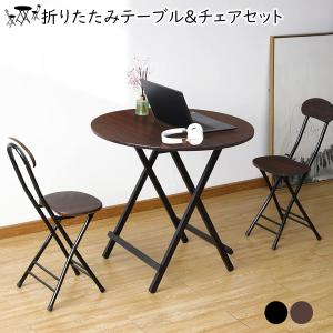 ダイニングテーブルセット 折りたたみテーブル チェア 丸テーブル 円形 ダイニングテーブル 幅80cm パイプ椅子 完成品 食事 作業 おしゃれ 2人掛け 3点セット