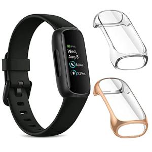 2枚セットケース適応 Fitbit Inspire 3,柔らかい TPU 全面保護カバー 擦り傷防止 軽量 カバー (ローズゴールド/透明)