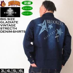 大きいサイズ メンズ GLADIATE 刺繍 ストレッチ デニム 長袖シャツ(メーカー取寄)3L 4L 5L 6L キングサイズ ビッグサイズ