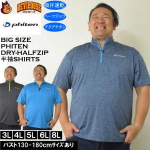 大きいサイズ メンズ Phiten DRY 吸汗速乾 アクアチタン カチオン 天竺 ハーフジップ 半袖シャツ Tシャツ(メーカー取寄)ファイテン 3L 4L 5L 6L 8L キング