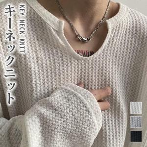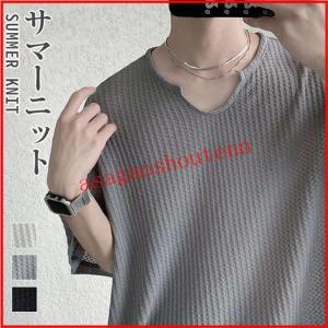 【値下げ】サマーニット メンズ ス Uネック 半袖ニット ゆったり 半袖 無地 薄手 ビッグシルエット Tシャツ ルーズ キレイめ 父の日
