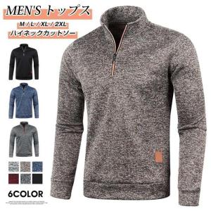 【特価】ハイネック メンズ カットソー ハーフジップ スウェット 秋冬 長袖おしゃれ ジッパー 30代 40代 50代 ス ルームウエア 立襟