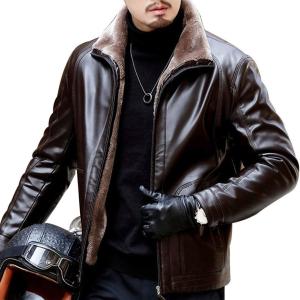 コート・ジャケット メンズ本革ジャケット、メンズレザープラスベルベットパッド入りのレザージャケット、冬のラペル毛皮、メンズシープスキンレザーコート