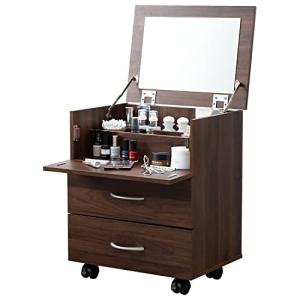 萩原(Hagihara) ドレッサー 化粧台 コスメワゴン キャスター ミラー 付き 収納 コンパクト 幅45×奥行31×高さ82cm ブラウン