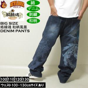 大きいサイズ メンズ 絡繰魂 鳳凰降臨 デニムパンツ(メーカー取寄)和柄 綿 コットン ジーンズ 刺繍 からくりたましい 100 110 120 130