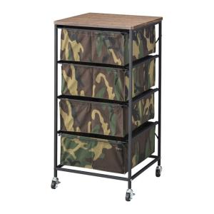 チェスト 迷彩柄 キャスター付き 収納 キャビネット 4段 スチール製 ワゴン 天板付き サイドチェスト サイドテーブル 91230