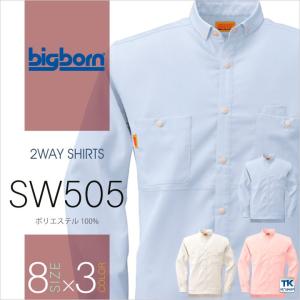 メンズ・レディース兼用2WAYシャツ ビッグボーン 作業服 作業着 ストレッチ 透け防止 形態安定 UVカット 吸汗 速乾 長袖シャツ 春夏 bb-sw505