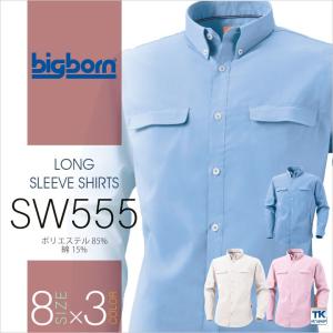 メンズ・レディース兼用ボタンダウン長袖シャツ ビッグボーン 作業服 作業着 ストレッチ 防シワ 吸汗 速乾 おしゃれ 長袖シャツ 春夏 秋冬 bb-sw555-b