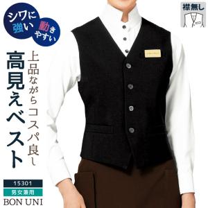 ベスト ノーカラー 男女兼用 メンズ レディース ストレッチ 動きやすい ポリエステル100% ホテル 接客業 ボストン商会 ボンユニ BONUNI bo-15301