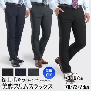スラックス 裾上げ済み ノータック スリム メンズ ウォッシャブル 洗える 春夏秋冬 レングス仕上げ ビジネス カジュアル レングス 裾上げ不要