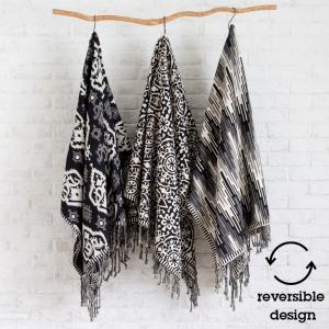 ブランケット おしゃれ 大判 毛布 コットン 膝掛け 約180×130cm インド製 北欧 ベッドスロー リバーシブル フリンジ モノトーン ネイティブ 91032