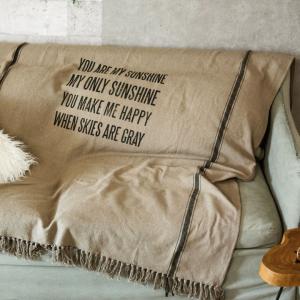 ブランケット コットン 約180×130cm 長方形 インド綿 タイポグラフィ 膝掛け ソファカバー 麻袋 大判 おしゃれ ヴィンテージ 肩掛 91345