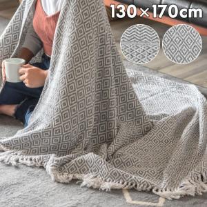 ブランケット ひざ掛け 約130×170cm 膝掛け ニットブランケット 毛布 大判 グレー ジオメトリック柄 ダイヤ柄 肩掛 インド綿 コットン 防寒 c-3440