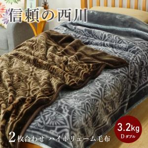 西川 ハイボリューム毛布 ダブル 昭和西川 衿付き 2枚合わせ ボリュームタイプ 3.2kg ふっくら ふわとろ 昭和西川 毛布 ブランケット 厚手 花柄 22305-04310