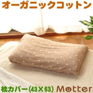 枕カバー オーガニックコットン 枕カバー ドット柄ブラウン 大人用Lサイズ
