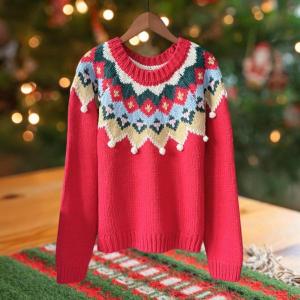 クリスマス セーター トップス クルーネック 長袖 パーティー ジャンパー トップス レディース セーター レッド