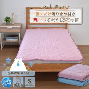 西川 置くだけでずれにくい 置くらく敷きパッド シングル 100×205cm 涼感 接触冷感 敷パッド 西川株式会社 滑り止め付き 夏 寝具 冷感