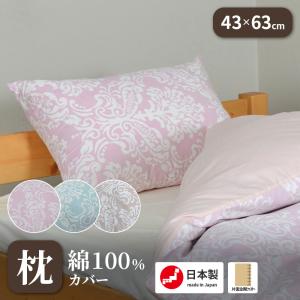 まくらカバー 日本製 綿100% 43×63cm ピローケース スヤマ エポック ダマスク柄 枕カバー おしゃれ 洗える 丸洗い可