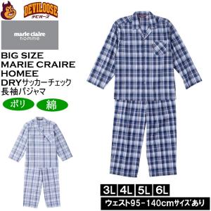 大きいサイズ メンズ marie claire homme DRYサッカーチェック 長袖 パジャマ(メーカー取寄)マリクレールオム 3L 4L 5L 6L ルームウェア ホームウェア