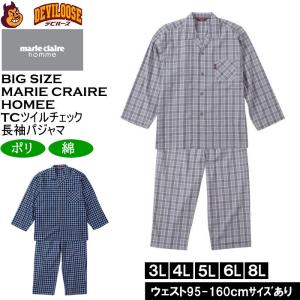 大きいサイズ メンズ marie claire homme TCツイルチェック 長袖 パジャマ(メーカー取寄)マリクレールオム 3L 4L 5L 6L 8L ルームウェア ホームウェア