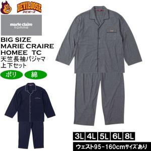 大きいサイズ メンズ marie claire homme TC天竺 長袖 パジャマ(メーカー取寄)マリクレールオム 3L 4L 5L 6L 8L ルームウェア ホームウェア